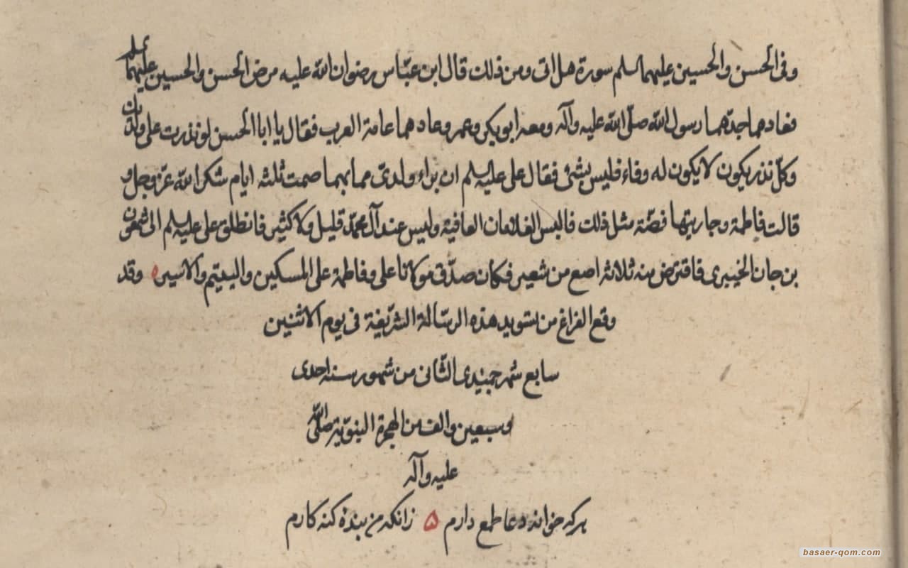 [8] وفي هذا المقام ينبغي التوجّه بالشكر للشيخ رحيم قاسمي (وفّقه الله لمراضيه) فهو صاحب الفضل في الإشارة إلى ما في هاتين النسختين، وقد تكرّم مشكوراً بتوفير صور النسختين بالإضافة إلى ملفٍ يحتوي على النسخة الثانية من أولها إلى آخرها.